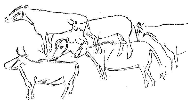 Calco de los dibujos realizado por el abate Breuil de La Torada