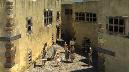 4ª. Nada más entrar, una maqueta de la parte de la ciudad excavada nos da una idea de qué vamos a ver. Un conjunto de pasarelas a la altura justa permite visualizar los restos de casas y almacenes encontrados, escaleras de acceso y ventanas. Alguno de tres plantas, conservan los soportes y encofrados de madera de la época donde se sustentaban éstas. Para hacernos una idea de a qué se dedicaba cada estancia, se han dejado restos donde se encontraron. O se han realizado reconstrucciones.