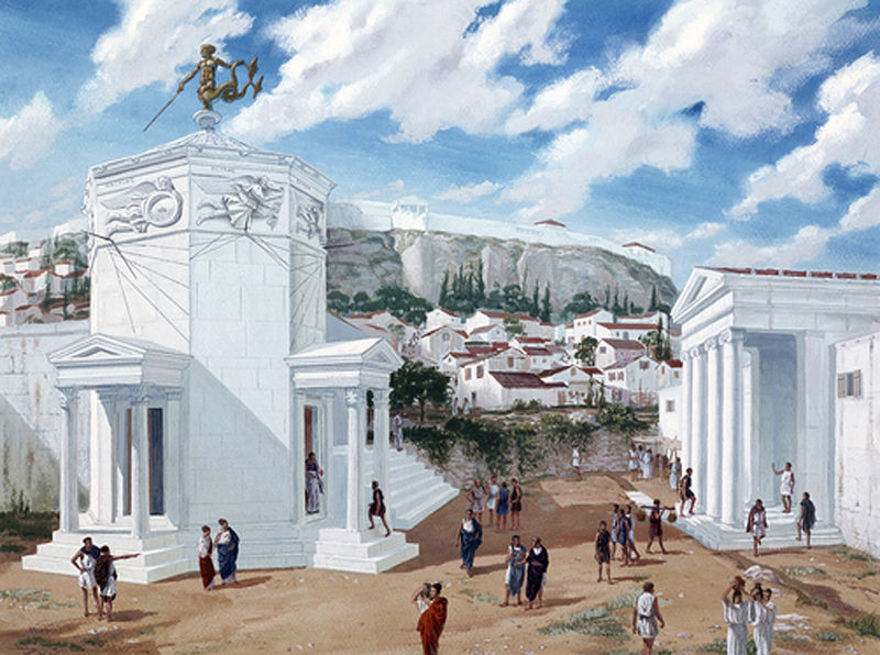 La torre de los vientos. Fotografia: ciudades30.com. La denominada «Torre de los Vientos» se encuentra en el Agora Romana de Atenas, al pie de la Acrópolis. Se considera la primera estación meteorológica del mundo abierta conocida.