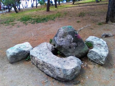 Fotografias: dos capirotes de señalización en el actual Parque de la Ventilla de Madrid Capital. Abril de 2019. Fuente: wikiloc.