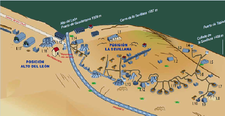 En los primeros días de la contienda en julio de 1936 el paso de la Sierra del Guadarrama tomo una importancia especial, ya que era el camino natural de las columnas nacionales que marchaban desde Castilla La Vieja hacia Madrid. En torno a los días 21, 22 y 23 de julio de 1936 las tropas de ambos bandos comienzan a tomar posiciones en el Puerto de Guadarrama, el Alto del León. Una de estas, perteneciente a las tropas rebeldes, es la de La Sevillana, la más compleja y mejor fortificada dentro de los sectores de defensa en que se dividió la zona para uno y otro bando. Se sitúa en el mismo puerto, a la derecha según miramos hacia Segovia.
