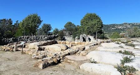 Vista general de la zona excavada y de la principal estructura musealizada. Fuente: stratoarqueologia.es y aquienlasierra.es