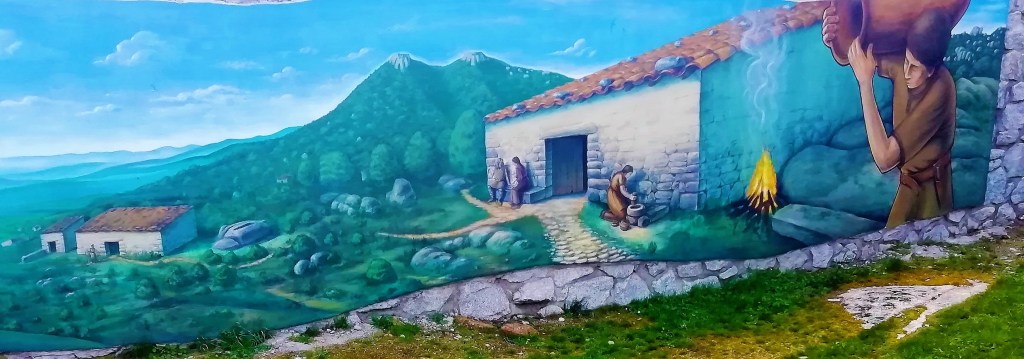 Mural que recrea la vida de la aldea en el propio yacimiento. Autor: Joaquín Vila – Arte Rural
