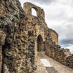 En el exterior se aprecia una entrada de estilo califal y arco de herradura, conocida como “Puerta del Hierro”, flanqueada por torres y almenas. En el interior, destaca la iglesia Prioral de San Benito, románica de transición al gótico fundada por la Orden de Calatrava que conserva un capitel corintio procedente de la basílica visigoda de Recopolis, reutilizado como pila bautismal y una cripta excavada en la roca. A ello hay que añadir restos de dependencias, almacenes, aljibes y almazaras y la conocida como Sala del Moro o de la cárcel, una estancia circular cubierta por una bóveda de magnífica sillería. En sus mejores momentos debió de ser fabuloso…Todavía te puedes imaginar a los caballeros con sus armaduras y sus canes custodiando el castillo y a los nobles paseando por sus estancias. ¡Si hasta la famosa princesa de Éboli vivió allí!