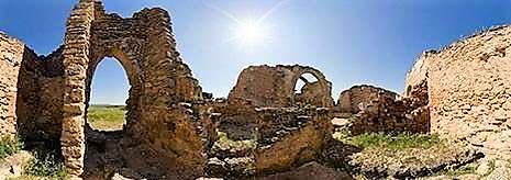 ¿Qué vemos? Pues la copia de una ciudad romana en versión nuevos ricos visigodos: un cardo y un decumano, una zona de foro con tiendas, el emplazamiento donde se situaba la puerta monumental de entrada, los restos de alguna casa y un par de arcos de una iglesia románica (la ermita del Olivo) edificada sobre un antiguo templo visigodo con restos de pavimento. La parte más interesante del yacimiento la constituye el gran palacio de Recaredo del que se conservan los cimientos y algunos restos de muro y que -por lo que queda y lo que se intuye-debió de ser espectacular. Después de la conquista árabe, la ciudad que, al parecer, en sus mejores momentos llegó a tener más de 3.000 habitantes (que no me parecen muchos) fue perdiendo poco a poco importancia y los nuevos conquistadores se trasladaron a Zorita donde erigieron la alcazaba en el siglo IX.