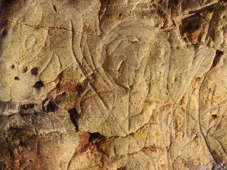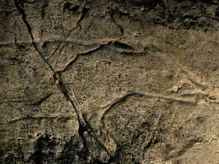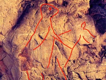 Fotografías: En la parte superior relieves encontrados: alguno de los numerosos antropomorfos y fauna del cuaternario. En el ángulo superior izquierdo una de las pocas representaciones de glotón que existen de esta época. Fuente: Página web del Ayuntamiento de Riba de Saelices. En la parte inferior industria musteriense y restos de neandertal asociados. Fuente: memoria de las actuaciones por parte de la Universidad de Zaragoza en los años 60 del siglo pasado.