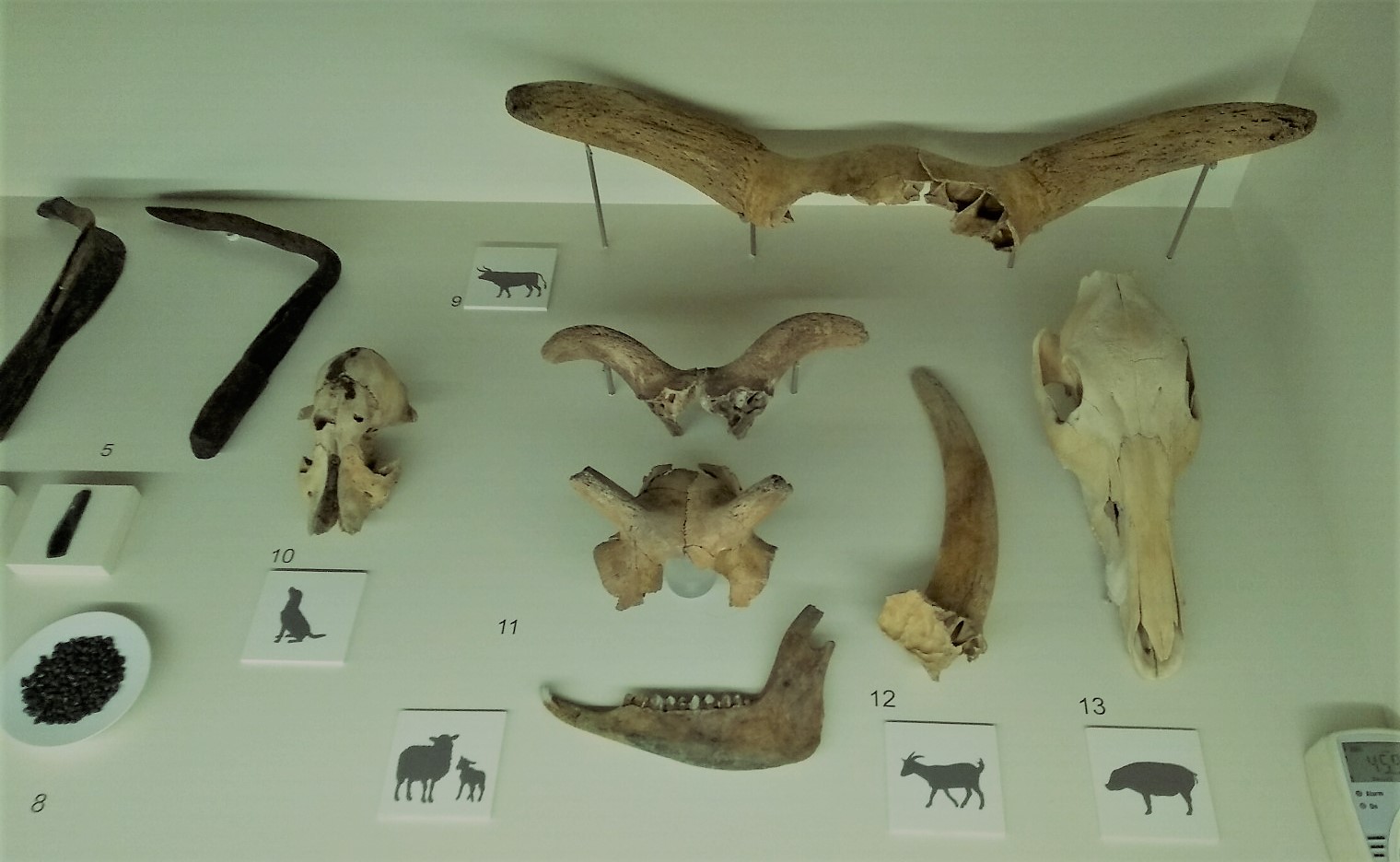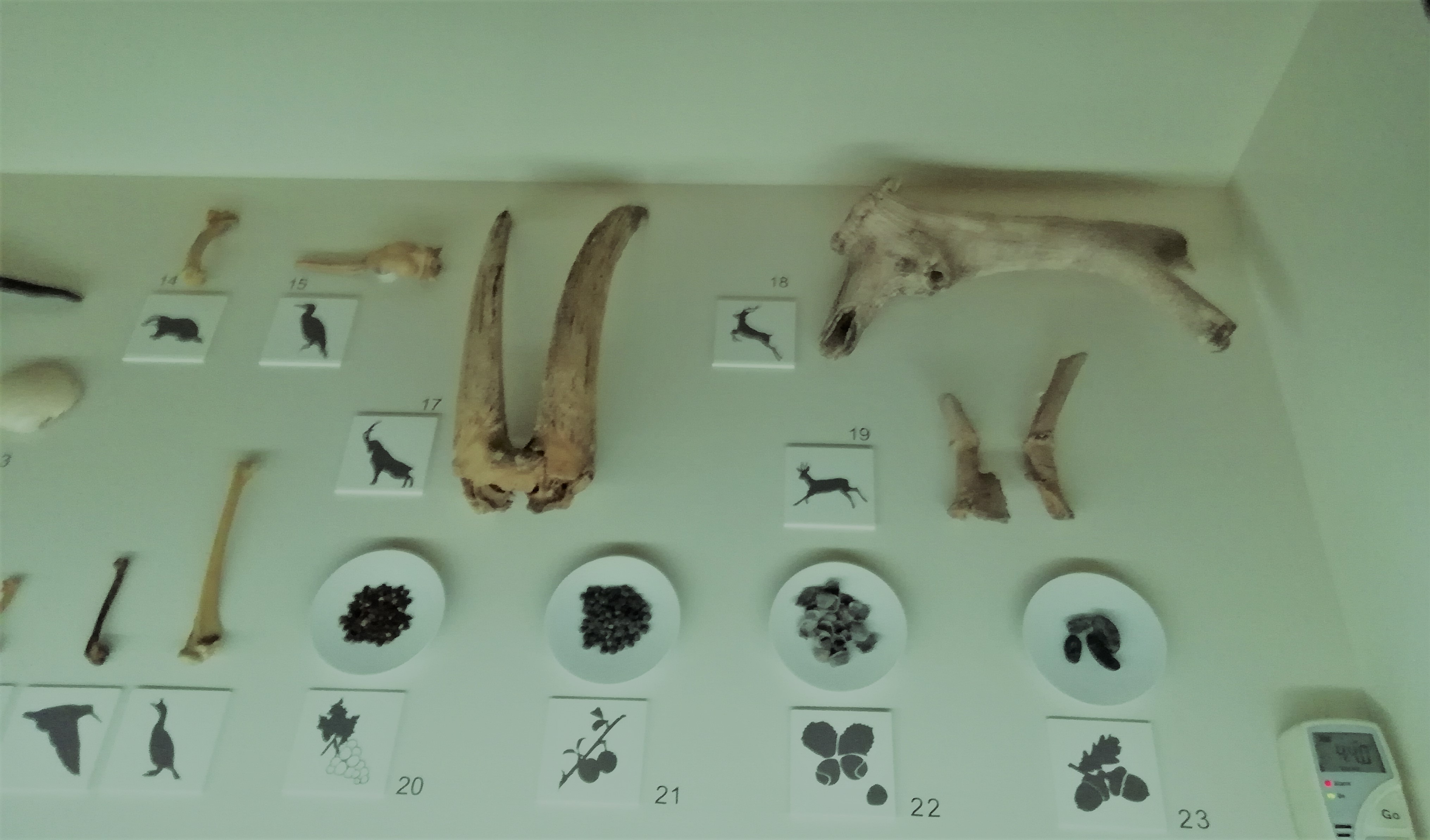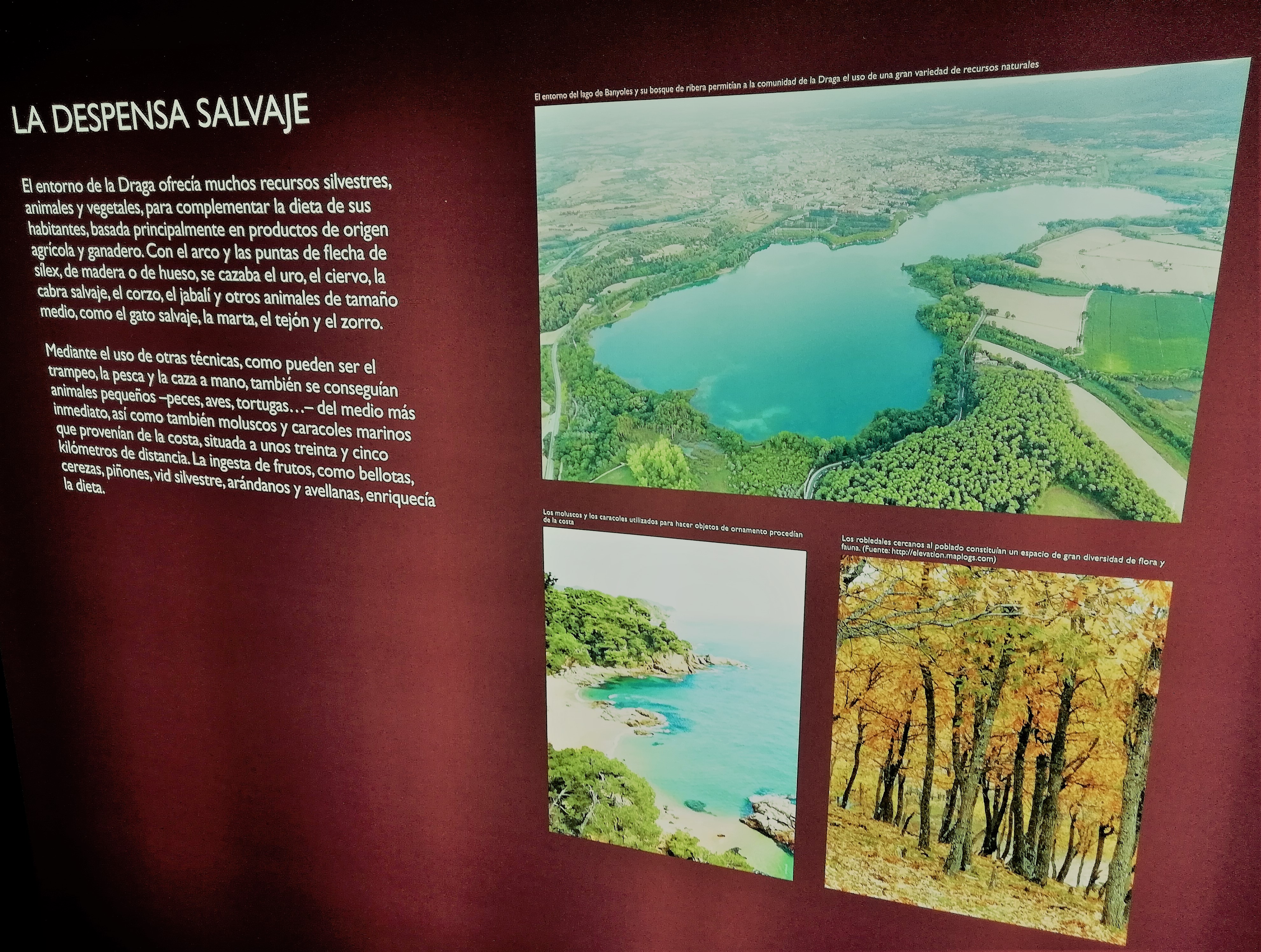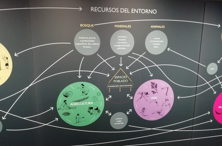 Tercero: para el público menos informado pasa siempre desapercibido el enorme trabajo de laboratorio y análisis que se realiza antes, durante y después de una excavación. Y en la exposición queda muy bien explicado con unos pocos paneles informativos, asociados a los que van detallando aspectos de la exposición o como gran panel aparte. Destacaba el que mostraba de modo gráfico -como en las películas de crímenes policiales, con el metacrilato donde se exponen los hechos, escenarios y sospechosos-, las complejas relaciones entre ámbitos de actividad, hallazgos y protagonistas que conformaban la vida y las condiciones de subsistencia en el poblado de La Draga.